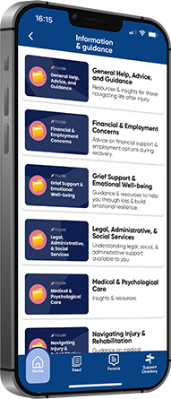 Information and guidance around common areas of concerns after serious injury, including immediate money concerns and benefits advice, accessing care, home adaptations and getting back to driving, as well as accessing legal information and support for people who might be looking to make a compensation claim, or who need the support of the Court of Protection after a brain injury.